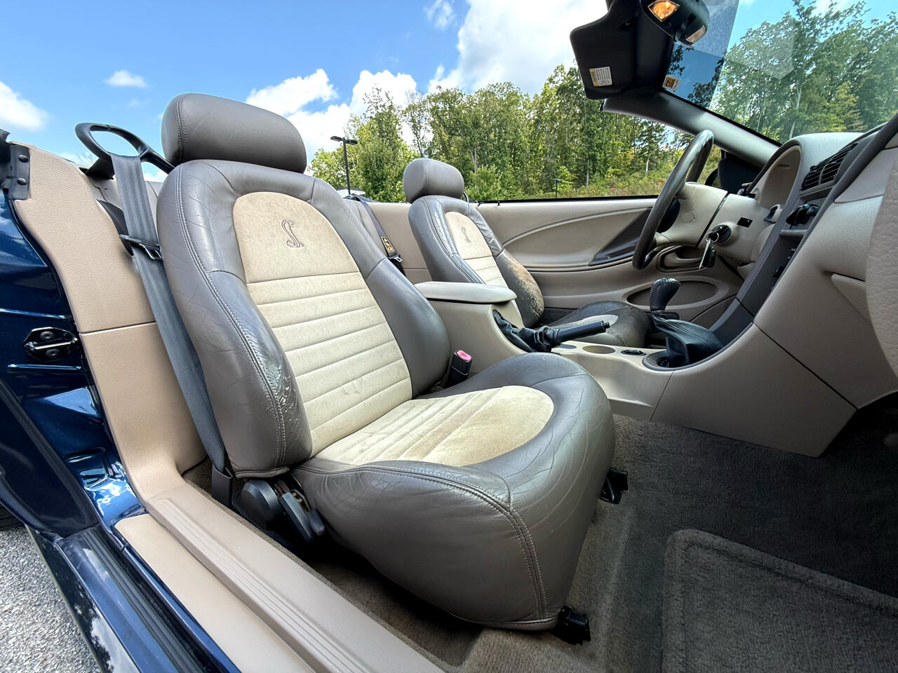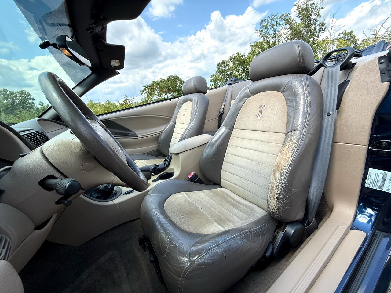 2001 Ford Mustang SVT Cobra Convertible with 58k actual Miles!! East TN car since new!! Leather Seats, 32 Valve- 4.6 V8, 5 Speed Manual, Factory Chrome Wheels and everything works great!! Ice Cold A/C, Power Top and all!! Ohhhh that “True Blue” color!! The seats do have some wear as you can see in the pictures. Feel free to call or message us for more info!