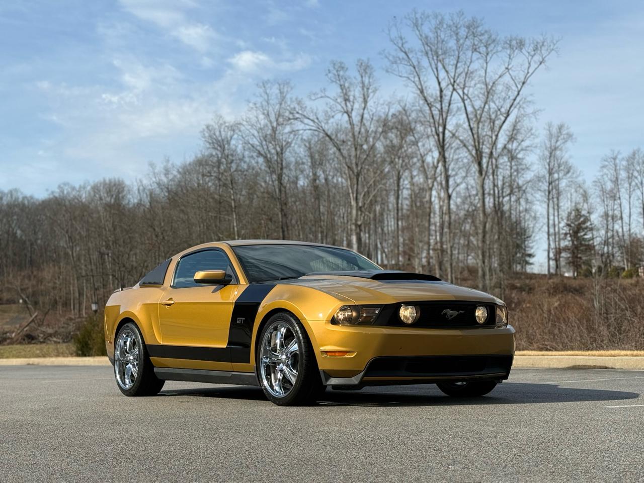 2010 Mustang GT Premium in “Sunset Gold” with 81k miles. 4.6V8, 5 speed Manual, Heated Leather Seats, Bluetooth Connect with Shaker Upgraded Stereo and Staggered 20” American Racing Wheels!! This is a really fun car!